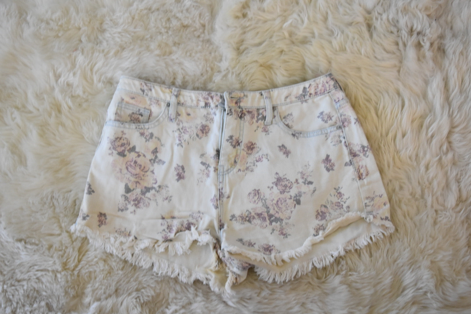 FLORAL PRINT DENIM SHORTS. FITS UP TO A 12/14