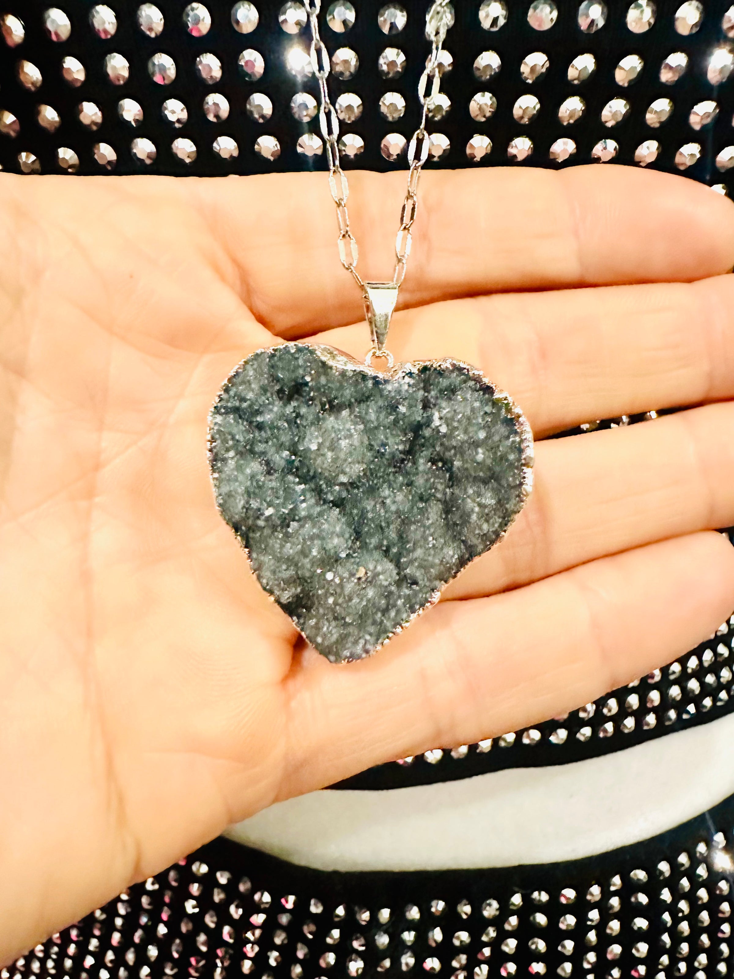 GRAY DRUZY PENDANT NECKLACE. Sterling silver. long chain up to 48 inches. Full silver back.